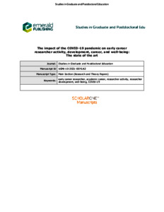 The impact of the COVID-19 pandemic on early career researcher activity, development, career, and well-being: the state of the art.