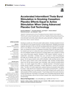 Mikellides, Georgios, Michael, Panayiota, Psalta, Lilia, Stefani, Artemis, Schuhmann, Teresa and Sack, Alexander T. (2022) Accelerated Intermittent Theta Burst Stimulation in Smoking Cessation: Placebo Effects Equal to Active Stimulation When Using Advanced Placebo Coil Technology. Frontiers in Psychiatry, 13 . p. 892075. ISSN 1664-0640