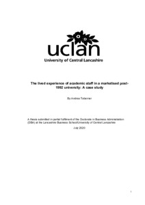 Taberner, Andrea M (2020) The lived experience of academic staff in a marketised post-1992 university-a case study. Doctoral thesis, University of Central Lancashire.