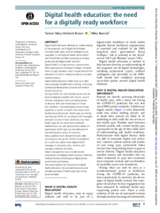 Brown, Tamsin Mary Holland and Bewick, Mike (2022) Digital health education: the need for a digitally ready workforce. Archives of disease in childhood: education and practice edition . pp. 1-4.