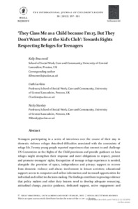 ‘They Class Me as a Child because I’m 15. But They Don’t Want Me at the Kid’s Club’: Towards Rights Respecting Refuges for Teenagers.