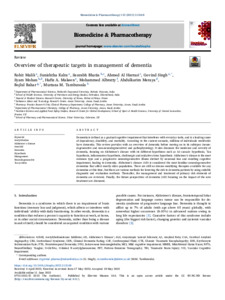 Malik, Rohit, Kalra, Sunishtha, Bhatia, Saurabh, Harrasi, Ahmed Al, Singh, Govind, Mohan, Syam, Makeen, Hafiz A, Albratty, Mohammed, Meraya, Abdulkarim et al (2022) Overview of therapeutic targets in management of dementia. Biomedicine & Pharmacotherapy, 152 . p. 113168. ISSN 0753-3322