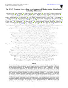 Lee, Yong-Hee, Johnstone, Doug, Lee, Jeong-Eun, Herczeg, Gregory, Mairs, Steve, Contreras-Peña, Carlos, Hatchell, Jennifer, Naylor, Tim, Bell, Graham S. et al (2021) The JCMT Transient Survey: Four-year Summary of Monitoring the Submillimeter Variability of Protostars. The Astrophysical Journal, 920 (2). p. 119. ISSN 0004-637X