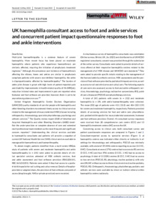 UK haemophilia consultant access to foot and ankle services and concurrent patient impact questionnaire responses to foot and ankle interventions.