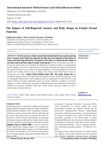 Kourtidou, Kalliopi, Tsironi, Maria and Theofilou, Paraskevi (2022) The Impact of Self-Reported Anxiety and Body Ιmage on Female Sexual Function. International Journal of Medical Science and Clinical Research Studies, 2 (6). pp. 571-584. ISSN 2767-8326