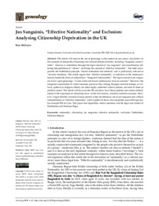 Jus Sanguinis, “Effective Nationality” and Exclusion: Analysing Citizenship Deprivation in the UK".