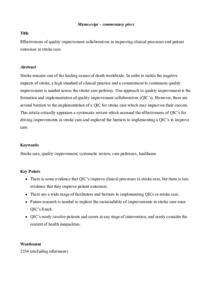 Stroke care: effectiveness of quality improvement collaboratives.
