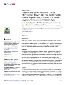 Dental caries is the most common preventable childhood condition. Non-dental professionals and health workers are often well placed to support parents in adopting positive oral health behaviours for their children. The aim of this study was to determine the effectiveness of behaviour change interventions and their individual component behaviour change techniques (BCTs), that were delivered by non-dental professionals and health workers.