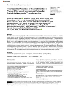 Bakshi, Hamid A, Faruck, Hakkim L, Ravesh, Zeinab, Ansari, Prawej, Hannan, J M A, Hasimoto, Rina, Takayama, Kazuo, Farzand, Rabia, Nasef, Mohamed M et al (2022) Therapeutic Potential of Cannabinoids on Tumor Microenvironment: A Molecular Switch in Neoplasia Transformation. Integrative Cancer Therapies . ISSN 1534-7354
