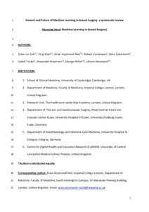 A systematic database search of Embase, MEDLINE, the Cochrane database, and Google Scholar, from inception to December 2021, was conducted of original articles that explored the use of machine learning and/or artificial intelligence in breast surgery in EMBASE, MEDLINE, Cochrane database and Google Scholar.