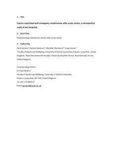 Factors associated with emergency readmissions after acute stroke: A retrospective audit of two hospitals.