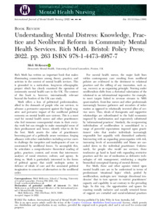 Understanding mental distress: knowledge, practice and neoliberal reform in community mental health services. Rich Moth. Policy Press, Bristol: 2022. Book review in The International Journal of Mental Health Nursing.
