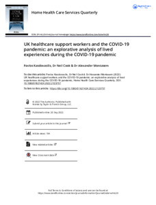 UK healthcare support workers and the COVID-19 pandemic: An explorative analysis of lived experiences during the COVID-19 pandemic.