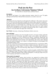 Peak into the Past : An Archaeo-Astronomy Summer School.