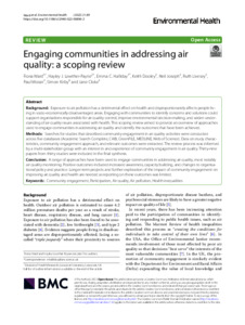 Ward, Fiona, Lowther-Payne, Hayley, Halliday, Emma C., Dooley, Keith, Joseph, Neil, Livesey, Ruth, Moran, Paul, Kirby, Simon and Cloke, Jane (2022) Engaging communities in addressing air quality: a scoping review. Environmental Health, 21 (1). ISSN 1476-069X