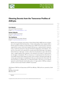 Murphy, Eoin, Gabuzda, Denise and Cawthorne, Timothy Vernon (2010) Gleaning Secrets from the Transverse Profiles of AGN jets. In: 10th European VLBI Network Symposium and EVN Users Meeting: VLBI and the new generation of radio arrays, September 20-24, 2010, Manchester, UK.