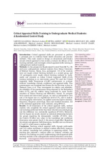 Moghadami, Mana, Ziaee, Hasti and Vara, Fatemeh (2022) Critical appraisal skills training to undergraduate medical students: A Randomized Control Study. Journal of Advances in Medical Education & Professionalism, 10 (4). pp. 253-258.