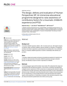 The design, delivery and evaluation of ‘Human Perspectives VR’: An immersive educational programme designed to raise awareness of contributory factors for a traumatic childbirth experience and PTSD.