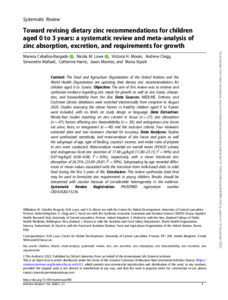 Toward revising dietary zinc recommendations for children aged 0-3 years: a systematic review and meta-analysis of zinc absorption, excretion and needs for growth.
