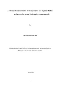 Chan, Cindy (2024) A retrospective examination of the experience and impacts of adult and peer online sexual victimisation in young people. Doctoral thesis, University of Central Lancashire.