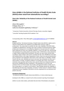 Background/Aims: The National Institutes of Health Stroke Scale (NIHSS) is widely used to measure stroke deficits and is deemed to be reliable when used by a range of professionals. This study aimed to establish the inter-rater reliability of the NIHSS when completed via telemedicine. Secondary aims were to explore if professional group, length of time since training and/or re-certification, frequency of use and reason for using the NIHSS influenced the inter-rater reliability.