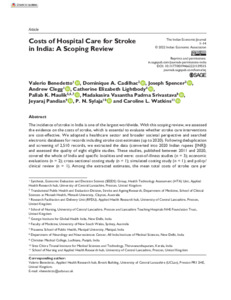 The incidence of stroke in India is one of the largest worldwide. With this scoping review we assessed the evidence on the costs of stroke, which is essential to evaluate whether stroke care interventions are cost-effective.