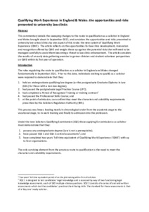 Qualifying Work Experience in England & Wales: the opportunities and risks presented to university law clinics