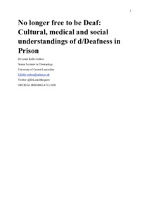 No longer free to be Deaf: Cultural, medical and social understandings of d/Deafness in prison.