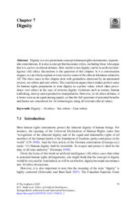 Dignity is a very prominent concept in human rights instruments, in particular constitutions. It is also a concept that has many critics, including those who argue that it is useless in ethical debates. How useful or not dignity can be in artificial intelligence (AI) ethics discussions is the question of this chapter. Is it a conversation stopper, or can it help explain or even resolve some of the ethical dilemmas related to AI? The three cases in this chapter deal with groundless dismissal by an automated system, sex robots and care robots. The conclusion argues that it makes perfect sense for human rights proponents to treat dignity as a prime value, which takes precedence over others in the case of extreme dignity violations such as torture, human trafficking, slavery and reproductive manipulation. However, in AI ethics debates, it is better seen as an equal among equals, so that the full spectrum of potential benefits and harms are considered for AI technologies using all relevant ethical values.
