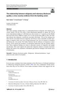 The relationship between religiosity and voluntary disclosure quality: a cross-country evidence from the banking sector.