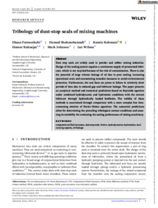 Dust stop seals are widely used in powder and rubber mixing industries. Design of the sealing system requires a continuous supply of pressurised lubricant, which is not recycled because of the risk of contamination. There is also the potential of large volume leakage of oil due to poor sealing, increasing operational costs and necessitating remedial measures to avoid environmental protection. Furthermore, the seal faces are prone to failure in relatively short periods of time due to reduced gap and lubricant leakage. The paper presents an analytical method and numerical predictions based on Reynolds equation under combined hydrodynamic and hydrostatic conditions with the entrant lubricant through hydraulically loaded feedholes. The validity of these methods is ascertained through comparison with a more complex but time‐consuming solution of Navier–Stokes equations. The numerical predictions allow for determining the prevailing tribological contact conditions and assessing its suitability for evaluating the sealing performance of mixing machinery.