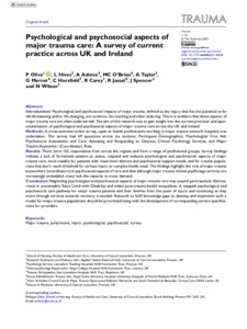 Psychological and Psychosocial aspects of major trauma care: a survey of current practice across UK and Ireland.