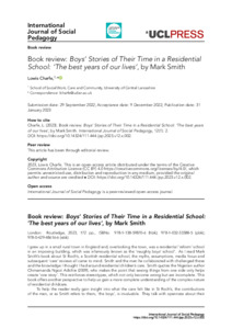 Boys’ Stories of Their Time in a Residential School: ‘The Best Years of Our Lives’ by Mark Smith (2022), London, Routledge.