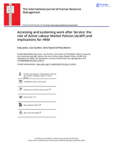 Jones, Katy, Scullion, Lisa, Hynes, Celia and Martin, Philip (2022) Accessing and sustaining work after Service: the role of Active Labour Market Policies (ALMP) and implications for HRM. The International Journal of Human Resource Management . pp. 1-22. ISSN 0958-5192