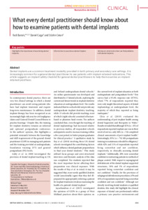 Dental implants are a common treatment modality provided in both primary and secondary care settings. It is increasingly common for a general dental practitioner to see patients with implant-retained restorations. This article suggests an implant safety checklist for general dental practitioners to help them examine an implant-retained prosthesis.