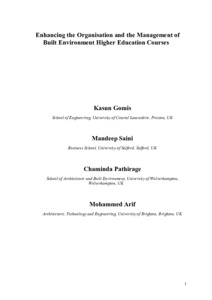 Methodology- A systematic approach was taken to obtain data, where a documental analysis and a close-ended questionnaire were adopted as data collection instruments. The documental analysis considered 334 Mid Module Reviews (MMRs) generating data from architecture, construction management, civil engineering, surveying and real estate students. Content analysis was used to identify critical themes within the MMRs and develop a closed-ended questionnaire. Twenty academics from each discipline completed the questionnaire. Eight drivers were developed from the data obtained from both MMRs and questionnaires. Content Analysis and Interpretive Structural Modelling (ISM) were applied to identify the relationship between the drivers. Finally, these drivers were categorised by their level of influence and reliance to highlight how they contributed to improving course organisation and management.