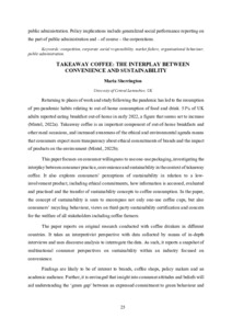 This paper focuses on consumer willingness to use one-use packaging, investigating the interplay between consumer practice, convenience and sustainability in the context of takeaway coffee. It also explores consumers’ perceptions of sustainability in relation to a low-involvement product, including ethical commitments, how information is accessed, evaluated and practised and the transfer of sustainability concepts to coffee consumption.