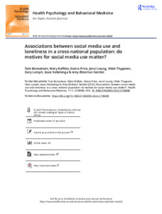 Conclusions: Our findings suggest that people who use social media for the motive of maintaining their relationships feel lonelier than those who spend the same amount of time on social media for other reasons. While social media may facilitate social contact to a degree, they may not facilitate the type of contact sought by those who use social media primarily for this reason.