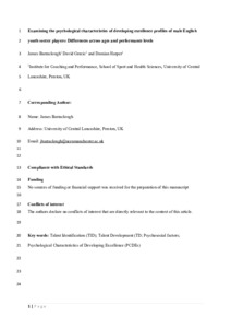 Examining the psychological characteristics of developing excellence profiles of male English youth soccer players: differences across ages and performance levels.