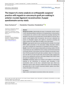 Kursumovic, Kenan and Charalambous, Charalambos Panayiotou (2022) The impact of a meta-analysis on orthopaedic surgeons' practice with regards to vancomycin graft pre-soaking in anterior cruciate ligament reconstruction: a paper questionnaire survey study. Health Science Reports .