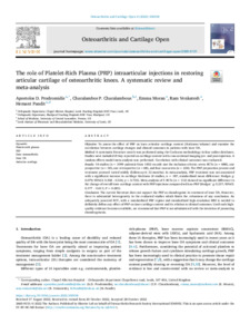 The role of Platelet-Rich Plasma (PRP) intraarticular injections in restoring articular cartilage of osteoarthritic knees. A systematic review and meta-analysis