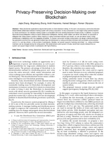 Zhang, Jiajie, Zhang, Bingsheng, Nastenko, Andrii, Balogun, Hamed and Oliynykov, Roman (2022) Privacy-Preserving Decision-Making over Blockchain. IEEE Transactions on Dependable and Secure Computing . pp. 1-17. ISSN 1545-5971