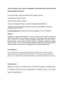 Dysphagia, or difficulty swallowing food or drink, can lead to poorer health outcomes and serious complications such as aspiration pneumonia. Dysphagia can often go undetected and is known to be common amongst hospitalised older adults and those living in institutional care. Less is known about the prevalence of dysphagia amongst older adults who live at home. This commentary critically appraises a systematic review that determines prevalence rates and risk factors for dysphagia in the community-dwelling elderly.