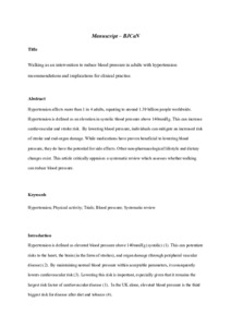 Walking as an intervention to reduce blood pressure in adults with hypertension: recommendations and implications for clinical practice.