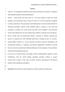 Talent Identification in Youth Basketball: Talent Scouts’ Perceptions of the Key Attributes for Athlete Development.