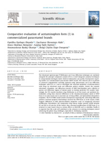 Oloyede, Oyedibu Oyebayo, Alabi, Zacchaeus Oluwatayo, Akinyemi, Amos Olalekan, Oyelere, Sunday Faith, Oluseye, Amuwaolorun Banky and Owoyemi, Bolaji Charles Dayo (2023) Comparative evaluation of acetaminophen form (I) in commercialized paracetamol brands. Scientific African, 19 . e01537. ISSN 2468-2276