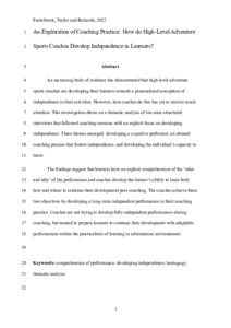 An Exploration of Coaching Practice: How Do High-Level Adventure Sports Coaches Develop Independence in Learners?
