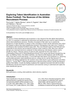 Larkin, Paul, Bonney, Nathan, Dugdale, James H., Kittel, Aden and Reeves, Matthew orcid iconORCID: 0000-0002-3903-2910 (2022) Exploring Talent Identification in Australian Rules Football: The Nuances of the Athlete Recruitment Process. Journal of Expertise, 5 (4). pp. 169-183. ISSN 2573-2773