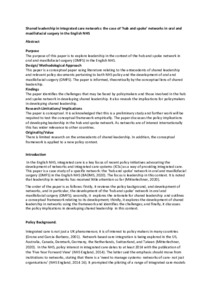 The paper identifies the challenges that may be faced by policymakers and those involved in the hub and spoke network in developing shared leadership. It also reveals the implications for policymakers in developing shared leadership The paper is conceptual. It is acknowledged that this is a preliminary study and further work will be required to test the conceptual framework empirically. The paper discusses the policy implications of developing leadership in the hub and spoke network. As networks are of interest internationally this has wider relevance to other countries There is limited research on the antecedents of shared leadership. In addition, the conceptual framework is applied to a new policy context