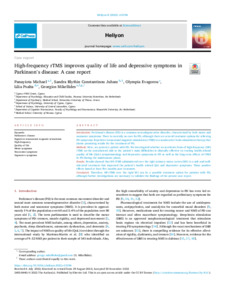 Michael, Panayiota, Constantinou Juhasz, Sandra Blythin, Evagorou, Olympia, Psalta, Lilia and Mikellides, Georgios (2022) High-frequency rTMS improves quality of life and depressive symptoms in Parkinson's disease: A case report. Technical Report. UNSPECIFIED.